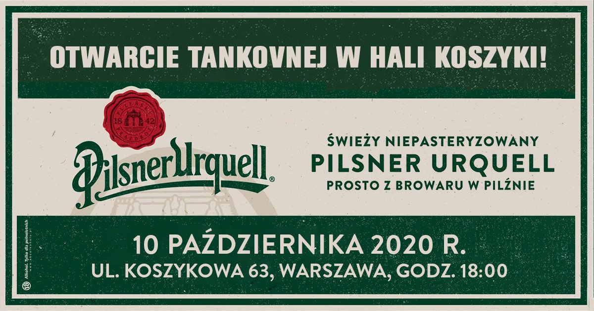 Niepowtarzalny smak złocistego Pilsnera w jego niepasteryzowanym wariancie, mieszkańcy Warszawy będą mogli odkryć w warszawskim Barze Koszyki (Hala Koszyki, ul. Koszykowa 63), który 10 października o godzinie 18:00 oficjalnie stanie się kolejną Tankovną na mapie stolicy.