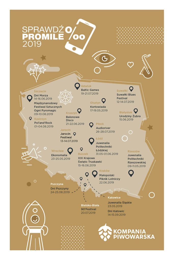 This year also marks a commemorative anniversary of the launch of the Check your BAC project. Within 5 years, Kompania Piwowarska, with its responsibility zone, participated in 61 different mass events organized for diversified customer groups. These were music events, beer feasts for thousands of people, aircraft picnics, disco-polo events, mass student events, and many more.