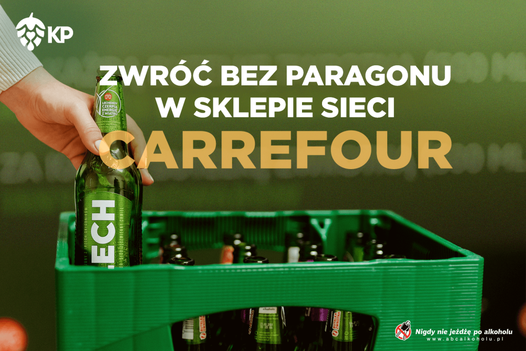 One of the barriers in the development of circular economy and a deposit system for returnable packaging in Poland is the requirement to present a proof of purchase (a receipt). Such a practice is applied by most stores, which do not accept bottles that were not sold by them. Starting from April 22, in all Carrefour hyper and supermarkets, it will be possible to return Kompania Piwowarska’s returnable beer bottles without a receipt. For each returned bottle, a customer will receive a full refund of the deposit in the form of an e-voucher that can be used to pay for shopping across the Carrefour chain. The deposit amounts to 50 groszy. The stores accept returnable bottles of the following Kompania Piwowarska’s beers: Lech, Tyskie, Żubr, Książęce, Kozel, Dębowe Dojrzałe Mocne and Wojak.