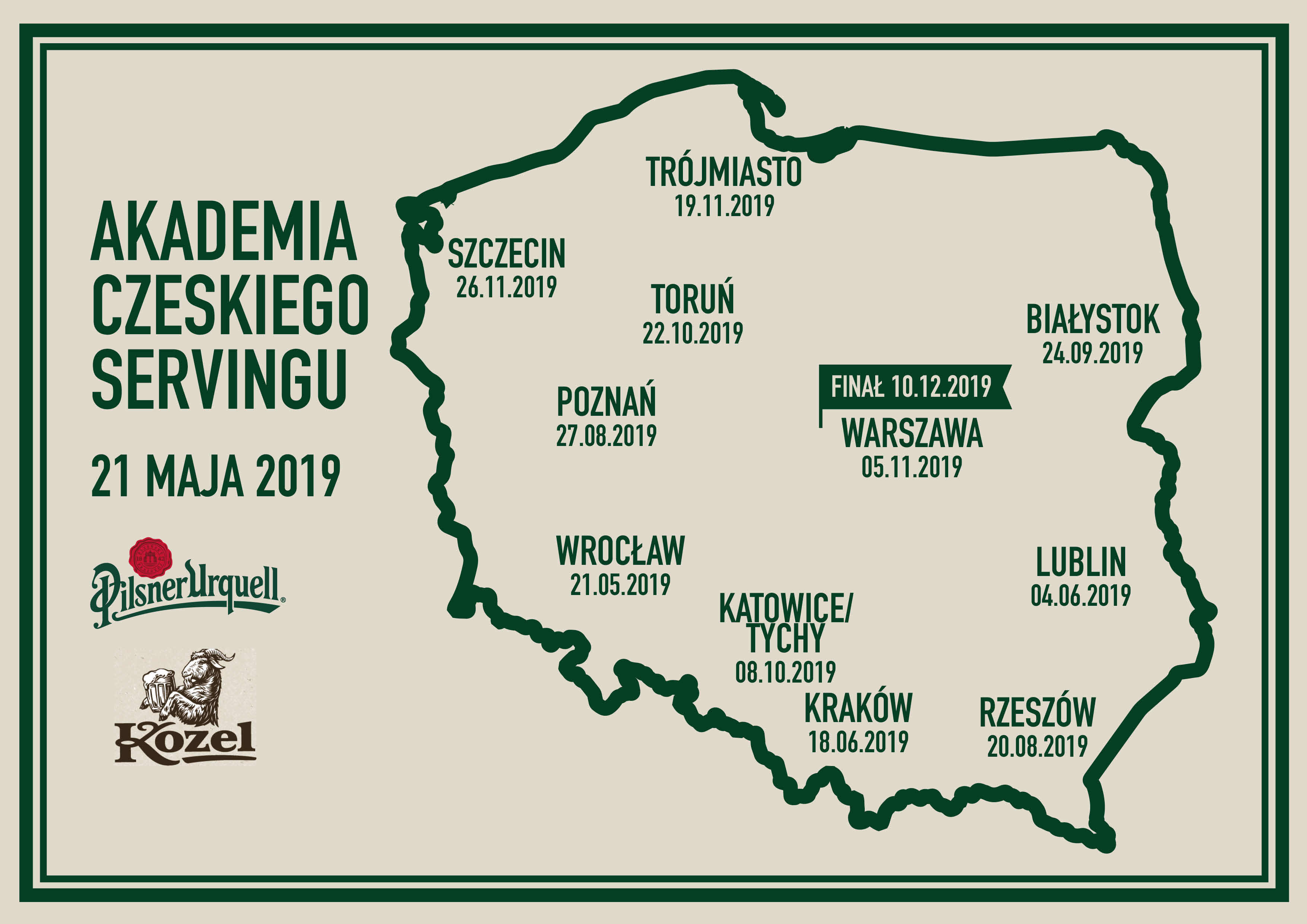Akademia zmienia nazwę na Akademię Czeskiego Servingu. W tej edycji będziemy kładli duży nacisk na czeski serving oraz zagadnienia techniczne przydatne w pracy za barem. Zaskoczymy też wszystkich nowymi konkurencjami. Niezmienna natomiast zostaje miłość do najlepszych czeskich piw oraz duet prowadzących – Sławek Fridel oraz Marcin Ostrowski! Do listopada odwiedzimy 11 największych miast w Polsce.
