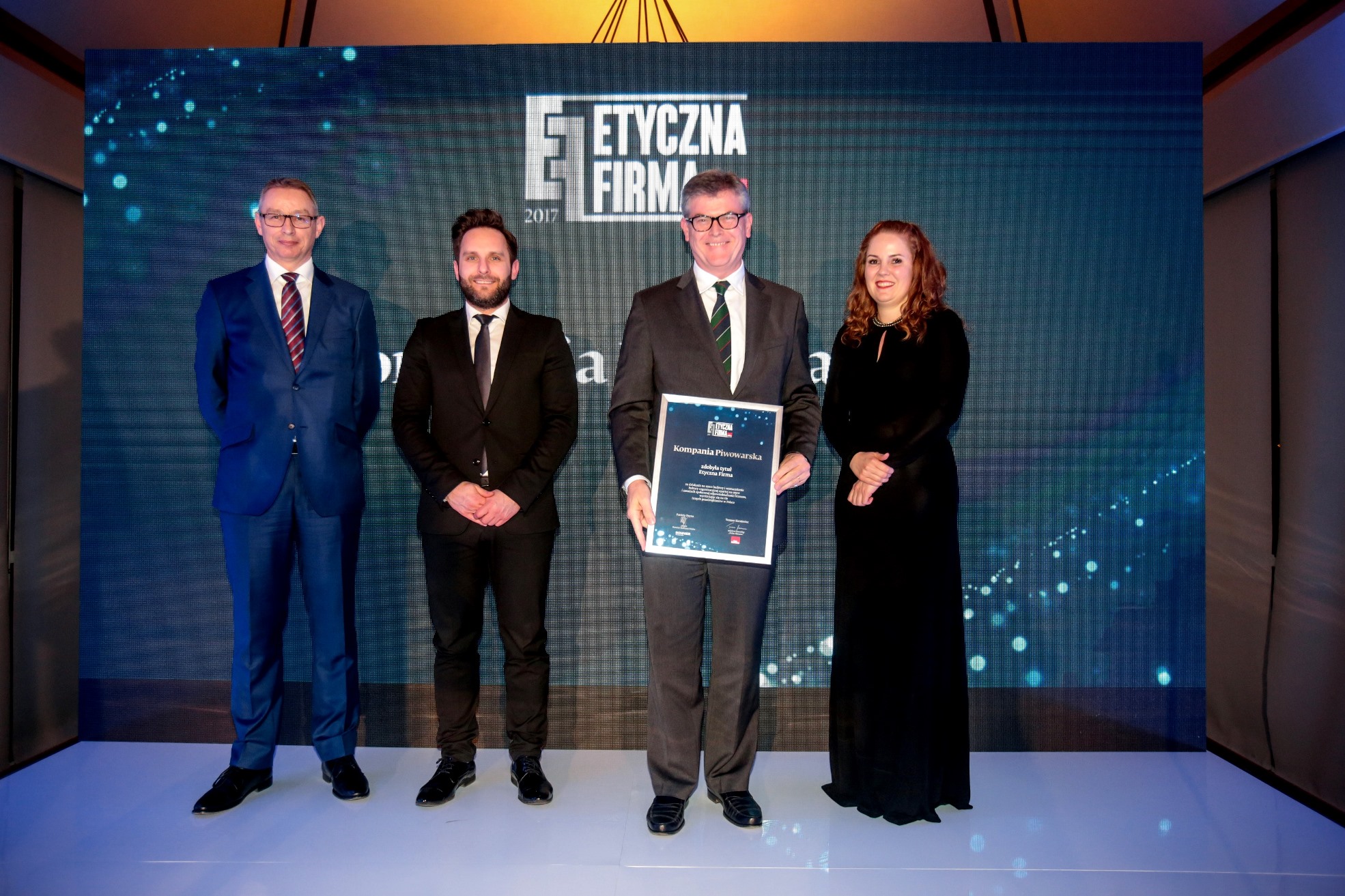 Tegoroczna edycja konkursu Etyczna Firma była już czwartą z kolei. Dziennik „Puls Biznesu” poprzez to przedsięwzięcie od 2015 roku promuje i wzmacnia zasady etycznego biznesu wśród polskich firm oraz wyróżnia najlepsze praktyki na rynku. W efekcie podczas każdej z poprzednich edycji tytuł Etyczna Firma przyznano 15 przedsiębiorstwom, a zaś w tym roku – aż 26. Dziewięć z nich regularnie bierze udział w konkursie, dzięki czemu teraz zasłużyły na tytuł Super Etycznej Firmy 2017. Kompania Piwowarska zadebiutowała w zestawieniu, uzyskując tytuł Etyczna Firma w kategorii dużych przedsiębiorstw. Co istotne, podczas tej edycji – zdominowanej przez branżę finansowo-ubezpieczeniową i logistyczną – jako jedyna reprezentowała wśród nagrodzonych rynek spożywczy.