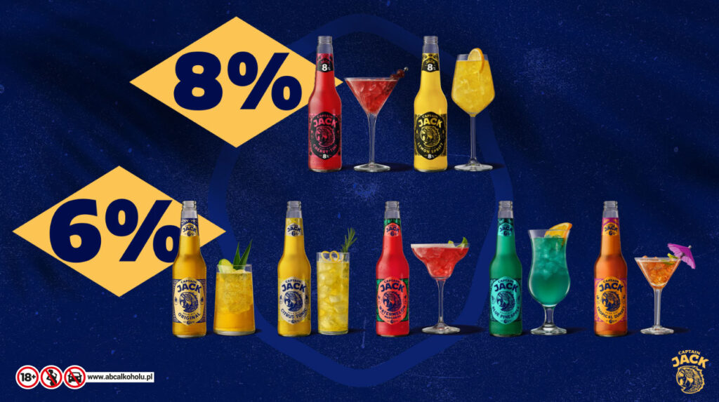 Odświeżone portfolio Captain Jack zawiera inspirowane popularnymi drinkami piwa 6%: Original, Blue Pineapple, Watermelon Margarita Flavour, Tropical Sunset oraz Citrus Tonic Flavour. Nowościami są produkty o zawartości 8%: Cherry Tini i Lemon Spritz, które już od 1 kwietnia będą dostępne w sklepach sieci Żabka.