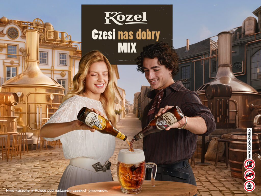 Kozel wprowadza odświeżoną komunikację, która w wyraźniejszy sposób podkreśla charakter premium marki. W centrum kampanii znajdują się dwa flagowe warianty piwa Kozel – jasny Kozel Ležák oraz ciemny Kozel Černý. Do tej pory wybierane osobno, w nowej komunikacji tworzą idealny duet. Jest nim KOZEL MIX – charakterystyczny dla marki sposób serwowania piwa, polegający na połączeniu obu wariantów w jednym kuflu. KOZEL MIX to idealny balans smaku – harmonijne połączenie nuty delikatnej goryczki z nutą delikatnej słodyczy. To nie tylko propozycja smakowa, ale przede wszystkim nowy rytuał, który wyróżnia markę i wpisuje się w czeską kulturę picia piwa. Symbolicznie łączy dwa światy – pokazując, że nie trzeba wybierać jednej strony.