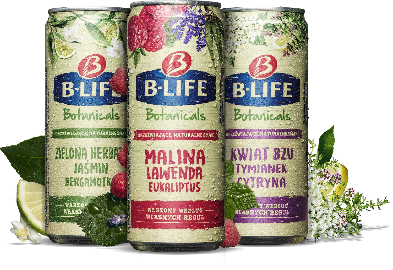 B-Life Botanicals to warzone napoje botaniczne dla dorosłych, które stanowią mieszankę piwa bezalkoholowego 0,0% i lemoniady powstałej z dodatkiem naturalnych aromatów i wyciągów roślinnych z kwiatów, ziół oraz owoców. Niepowtarzalny, bogaty smak napojów to efekt połączenia odpowiednio dobranych składników i zastosowanej receptury, której sercem jest staranny proces warzenia. B-Life Botanicals jest dostępny w trzech wariantach smakowych: odświeżającego kwiatu bzu wzbogaconego ziołową nutą tymianku i rześkim akordem cytryny, dojrzałych malin w towarzystwie lawendy i orzeźwiającego eukaliptusa oraz zielonej herbaty z kwiatem jaśminu i aromatyczną bergamotką. Każdy z nich wyróżnia doskonały, wielowymiarowy smak, który rozwija się z kolejnym łykiem.