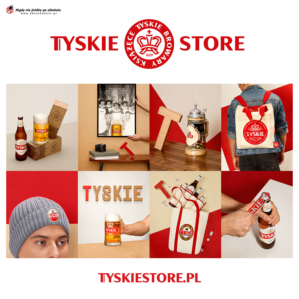 Na stronie Tyskie Store można znaleźć m.in. szkło do piwa, w tym replikę kufla z 1929 r., który powstał z okazji 300-lecia browaru, albo ceramiczny kufel z pokrywką z limitowanej edycji. Historię browaru uwieczniono również na plakatach, blachach, pocztówkach i magnesach w stylu vintage oraz w anglojęzycznej książce o Tyskich Browarach Książęcych. Tyskie pomyślało również o fanach tekstyliów i oferuje koszulki, skarpety, czapki, torby i plecaki. Dla spragnionych stylowych gadżetów przygotowało craftowe nosidło na piwo z tanka, stalowe otwieracze z logo marki i inne unikalne przedmioty.