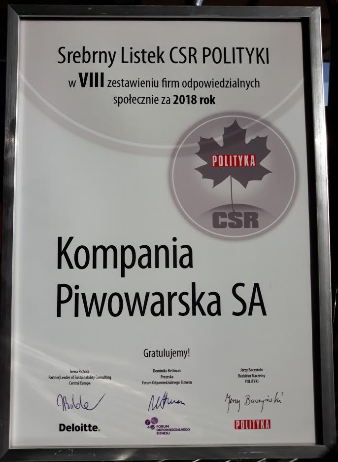 Kompania Piwowarska z kolejnym Srebrnym Listkiem CSR